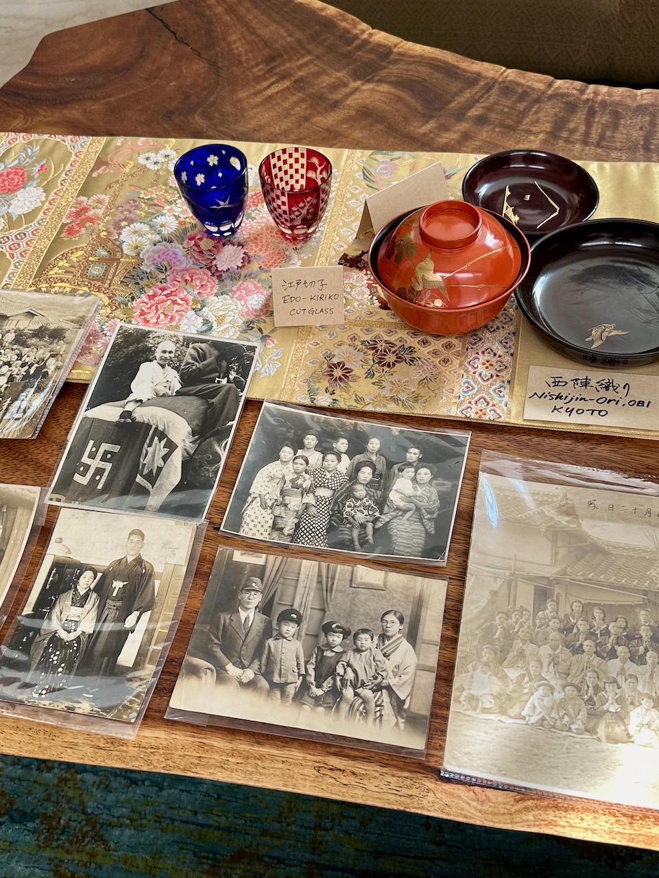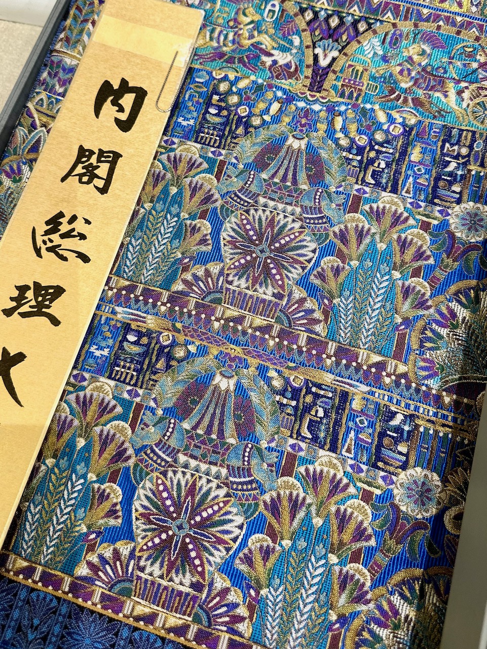 天皇皇后両陛下のお写真を眺めつつ、日本国の政府機関を象徴する紋章でもある「五七桐(ごしちきり)紋」が施されたグラスを手にお酒をいただく。何とも感慨深い。温かなおもてなしに心より感謝する。