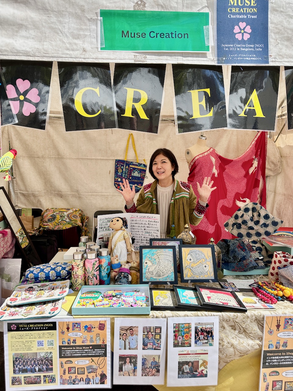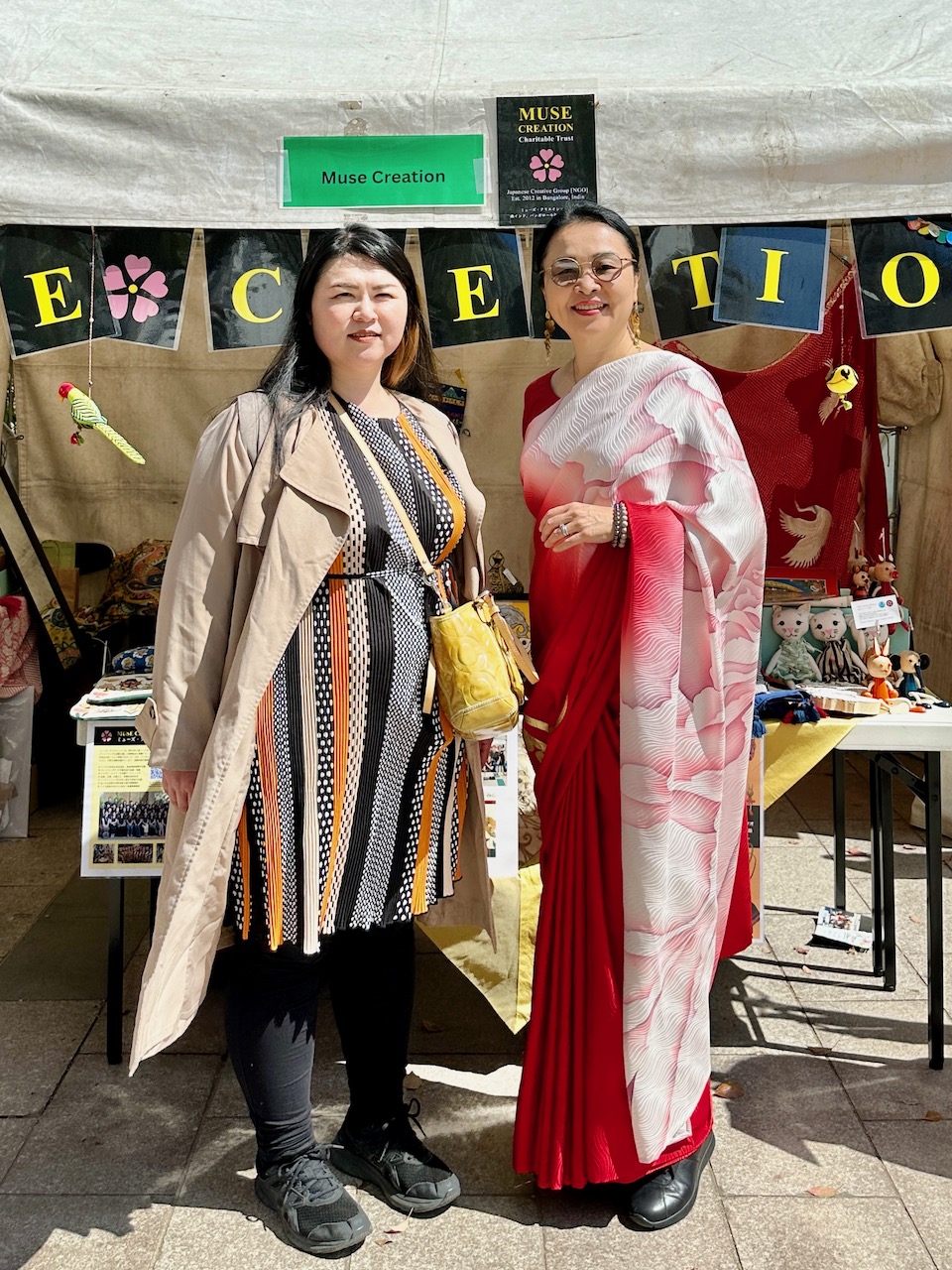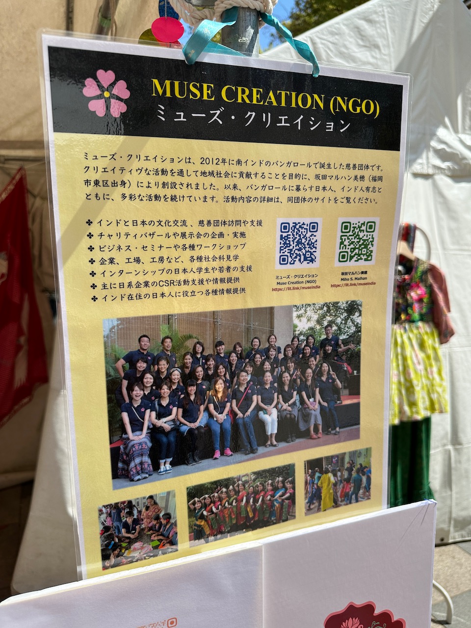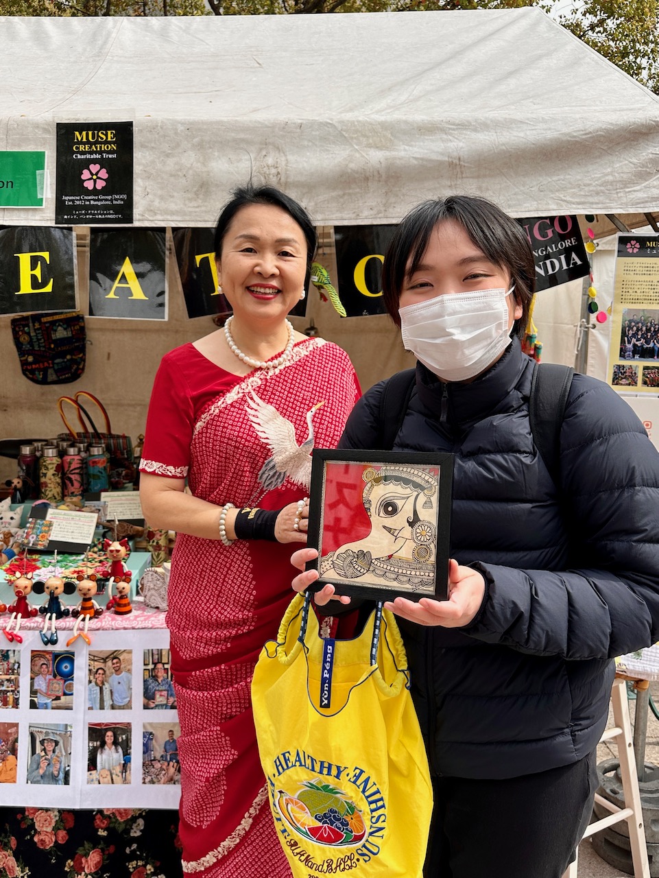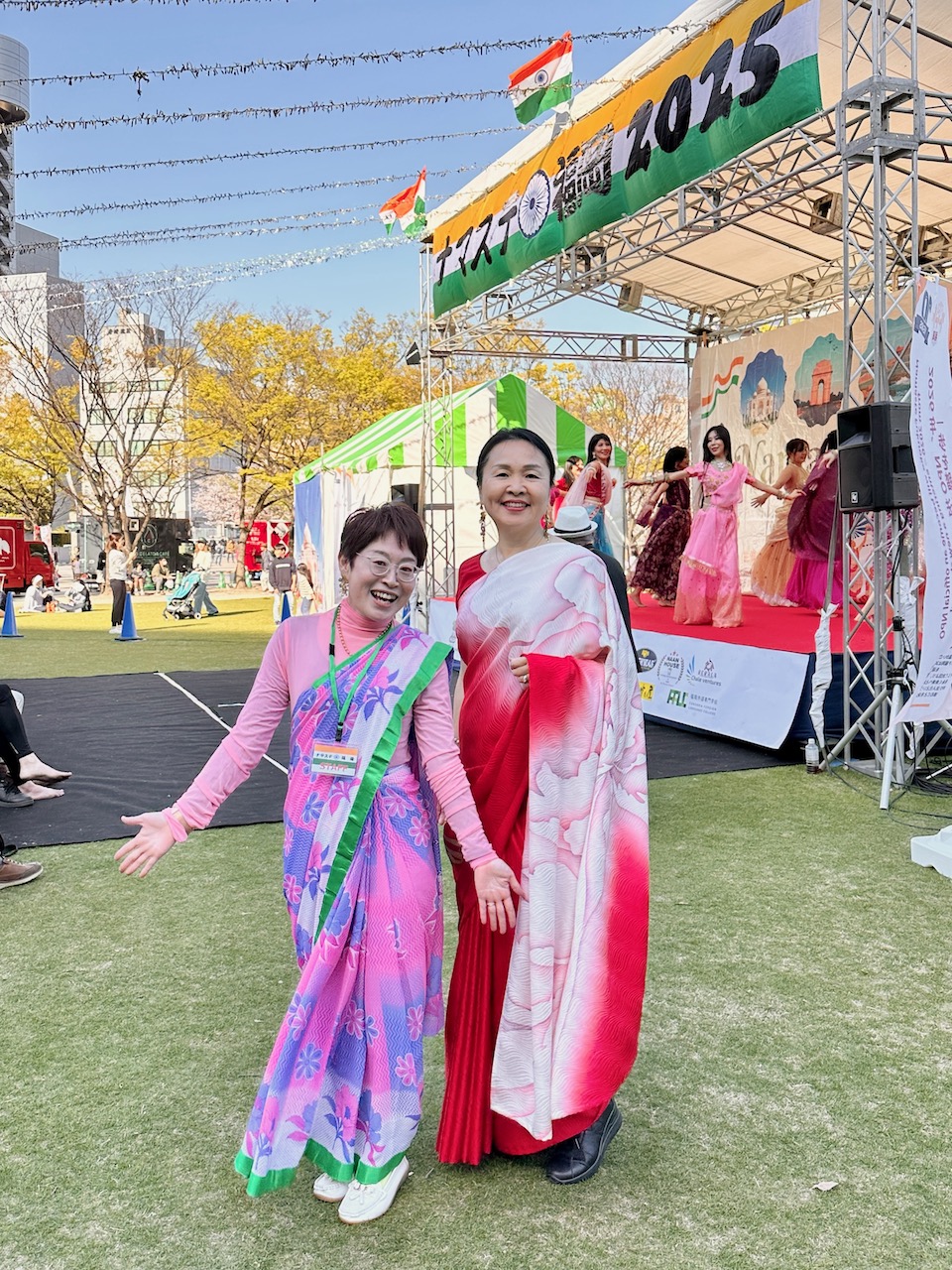 昨年、わたしが急遽、コーディネートすることになったJWマリオットホテルでの着物ファッション・ショーに、中根総領事も参席されていた。その流れで、今年の天皇誕生日式典では、京友禅サリーの展示をさせていただく運びとなった。