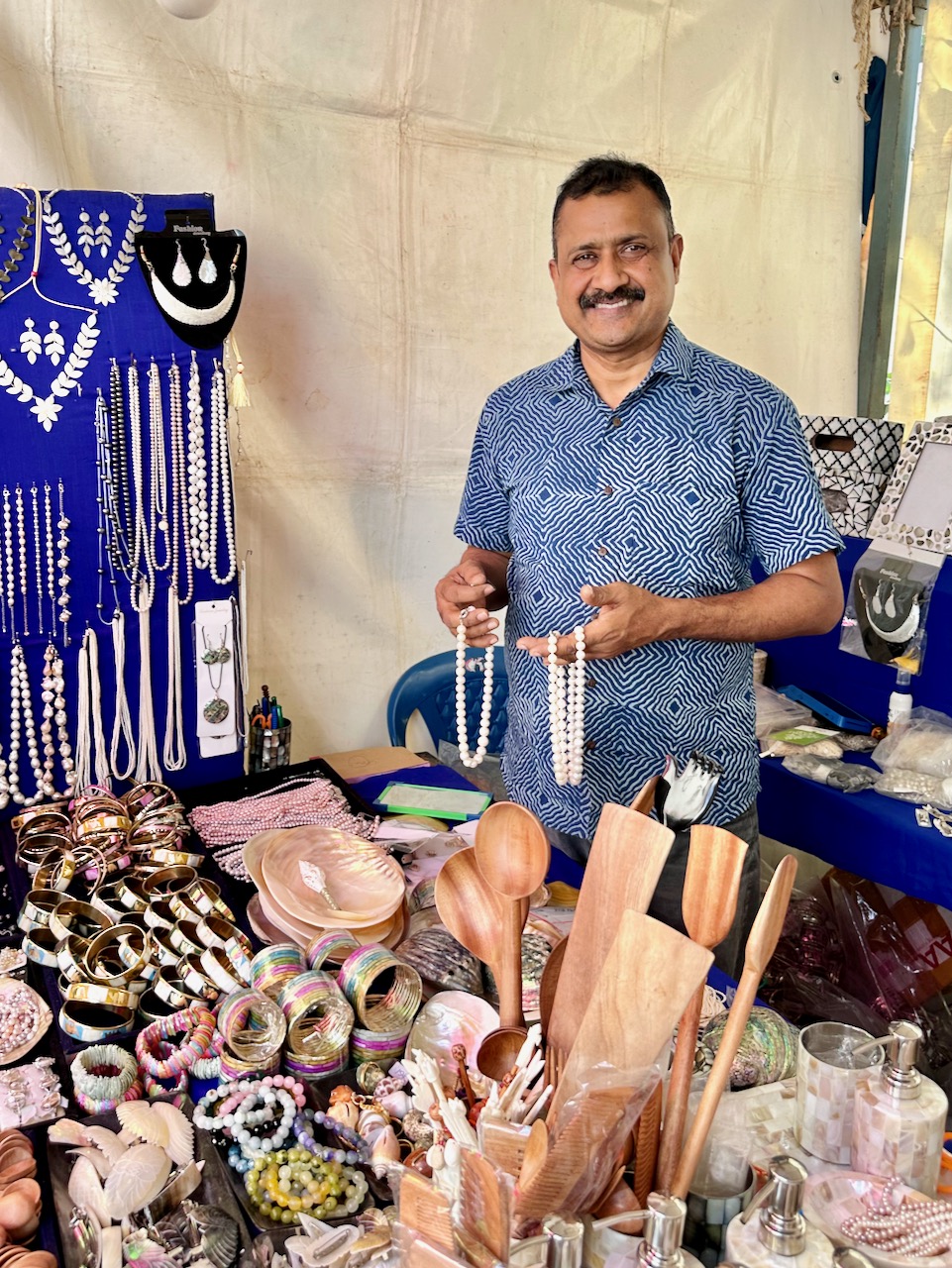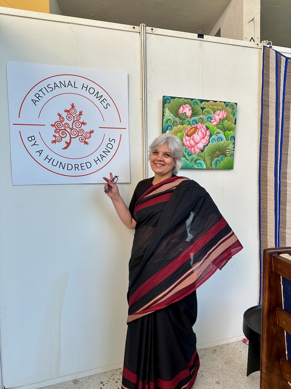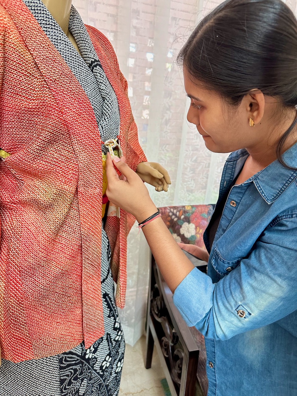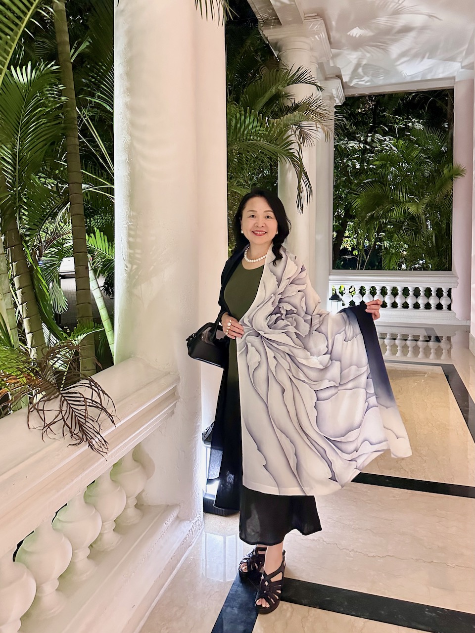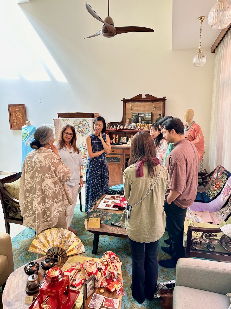 昨年、わたしが急遽、コーディネートすることになったJWマリオットホテルでの着物ファッション・ショーに、中根総領事も参席されていた。その流れで、今年の天皇誕生日式典では、京友禅サリーの展示をさせていただく運びとなった。