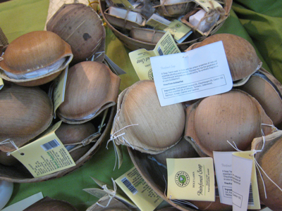 ヤシの葉を乾燥・成型して作られたエコロジカルなパッケージ入りのこの石けん。ココナツオイルやニーム、トゥルシ、ターメリックといった、インドならではのお肌によいハーブが配合されています。3種類ほどあったので、それぞれ購入しました。
