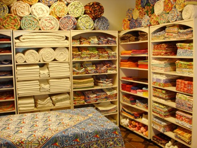 店内は、カラフルな木綿製品の海。テーブルリネンにベッドリネン、キッチン用品に衣類、小物、雑貨と、ヴァラエティ豊かな商品が満ちあふれています。