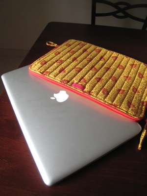 ムンバイ店の片隅に、たった1つのサイズだけ売られていたもの。我がMacBook Proにぴったりのサイズだったのです。クッションがしっかりしている上、開閉もしやすく、とても気に入っています。