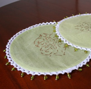 コースター類も、色柄豊かに揃っています。これは周囲のビーズがかわいらしくて気に入りました。