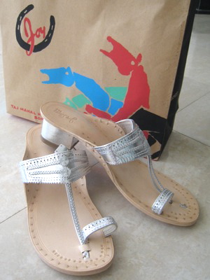 インドでは「チャッパル」と呼ばれるサンダル。さまざまなタイプがありますが、上の写真のチャッパルは、伝統的なデザインを若干、モダンにアレンジしたもの。一昨日、南ムンバイのホテル、タージマハル・パレスにあるJOY SHOESで購入しました。