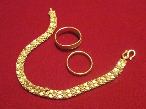 重量が少々足りないとのことなので、さらに、いつ誰からもらったのかもわからない、果たしてゴールドかどうかさえ定かでない指輪を2つを追加します。