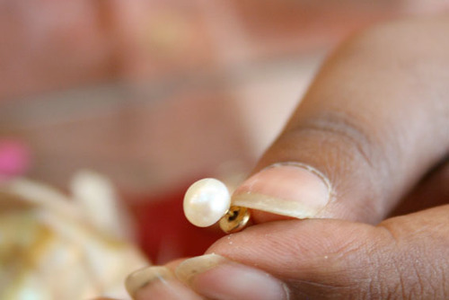 ちなみに真珠は100g単位で値段が決められているとのこと。上の写真は、重量を測定しているところです。