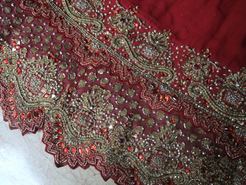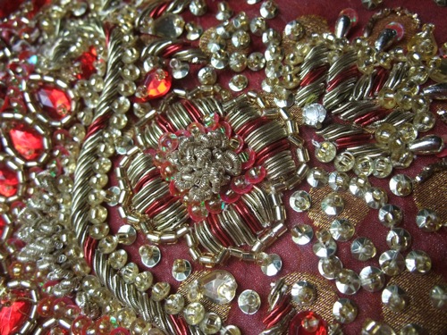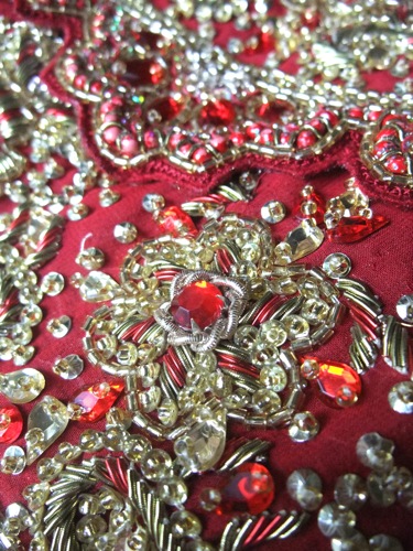 重量感があると同時に、触ると「痛い」です。うっかり、腕などをスカートにこすりつけると「かすり傷」ができます。着飾るのも一苦労です。