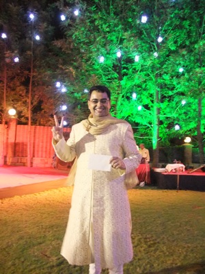 急ぎ、身支度をする。夫は一張羅のシェルワニを着用。わたしは刺繍入りの白いサリーか、ピンクの絞りサリーか、赤いレンガ・チョリ (Lehnga-Choli)か、いずれの衣裳にするか決めていなかった。