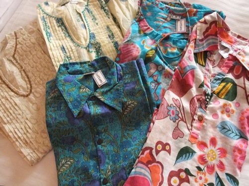 ブラウスやクルタ(チュニック風)などのトップスは、平均500ルピー前後。1000円程度とお手頃です。あれこれと試着した結果、着心地のよい数枚を購入しました。