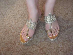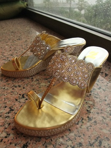 こちらは、本日ショッピングモールで購入したサンダル。インドには、このように「光り物系派手派手」なサンダルがよく見られます。