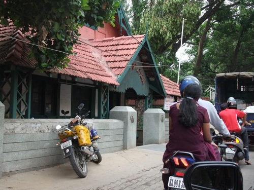 左上の写真、赤茶色の屋根の、昔ながらの建築物は、バンガロール中心街にあるポリスステーション。喧噪のただ中にあって、長閑な雰囲気を漂わせている。