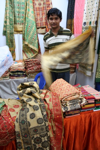 ウエストベンガル州、アッサム州、マニプール州などから集まった職人やその家族、親戚たちが、直接、行商に来ています。