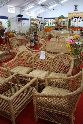 このフェアは、籐製品が豊富に揃っていました。家具などの大きなものから、バッグなどの小物類までさまざまです。