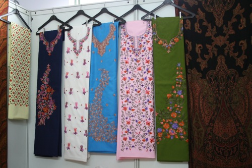 こちらはカシミール地方の刺繍入り布。サルワールカミーズ用の布ですが、わたしは以前、この布でロング丈のドレス(ワンピース)なども作りました。
