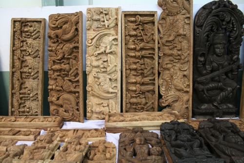 こちらは木彫り製品。防虫効果のあるニームの木でできています。我が家にもいくつか、飾られています。