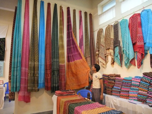 こちらは、ビハール州のバガルプール (BHAGALPUR)のブース。色合いが渋く落ち着いていて、上品な印象です。タッサーシルク (Tussar Silk)と呼ばれる絹で、素朴な風合いです。