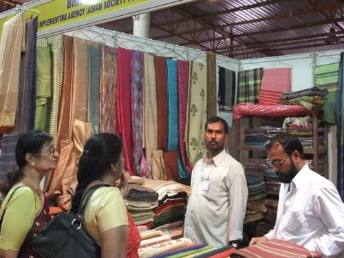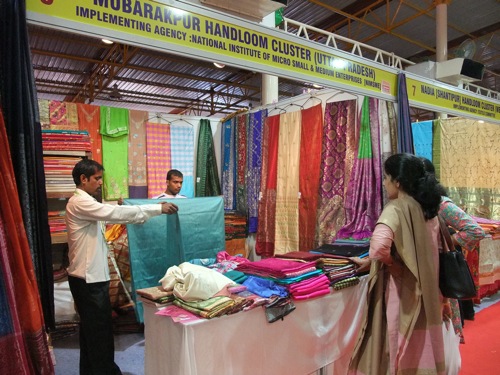 あれこれとご紹介したいところですが、それではきりがないので、個人的に気に入ったブースをピックアップ。まずはここ、ムバラクプール (Mubarakpur)の絹織物。