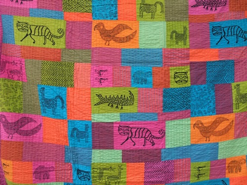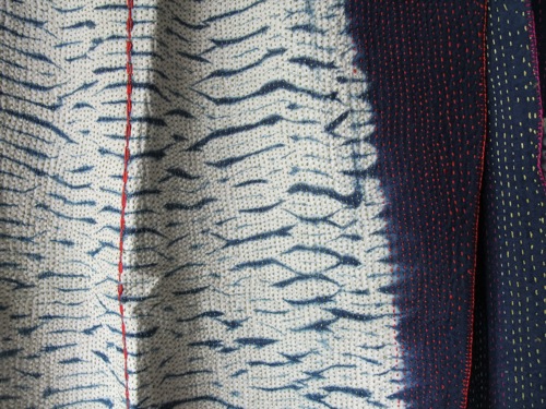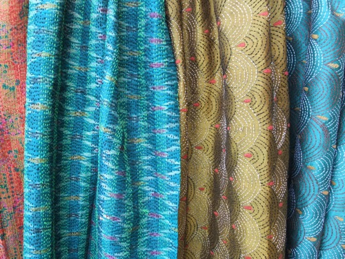 これはベンガル地方伝統のカンタ刺繍。刺し子のようなステッチが施されています。もっと込み入った柄物などもありますが、これはシンプルなもの。