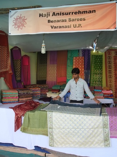 本日わたしが気に入ったのはこのブース。ヴァラナシ・シルク(Varanasi silk)の店です。