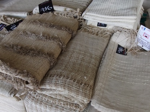 彼女が気に入ったというこの布製品。伝統的な手織りによる綿の肌触りのよさ、やさしげな質感を彼女は力説していました。