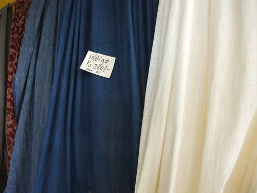 こちらはおなじみ、サルワールカミーズの仕立て布(マテリアル)。手紡ぎ糸、手織り布の素朴な質感です。比較的薄く、コシのない布ですが、着心地はよさそう。