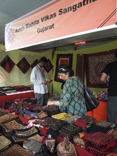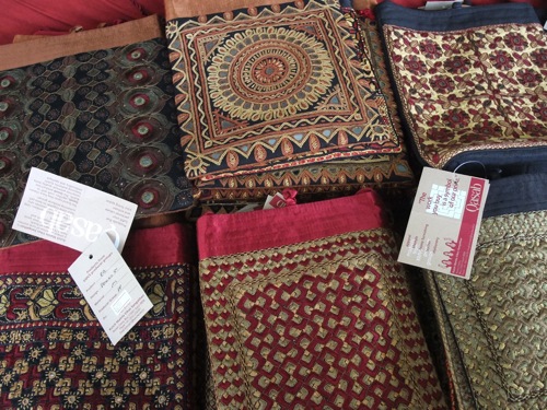 こちらはグジャラート地方のカッチ刺繍のブース。カッチ刺繍の小物は我が家でもクッションカヴァーや壁掛けなどを愛用しています。