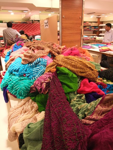 店のおじさんが、「丁寧に」サリーを広げてくれるところに、好感が持てます。