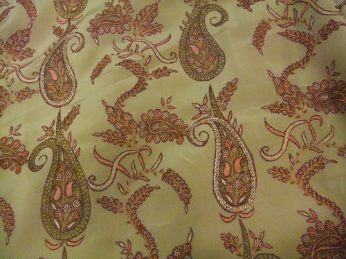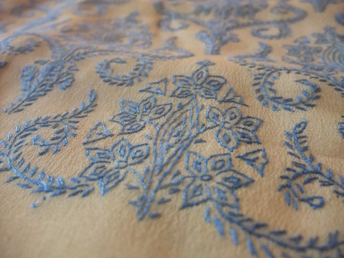 どっしりと重量感のある、ありがちなカシミール独特の刺繍とはまた別の、軽い布地に好適なニードルワークです。