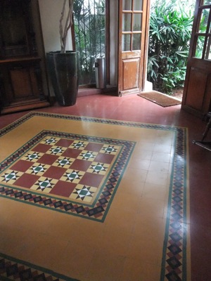 コロニアル調の建築物で、床のタイルがきれい。HATWORKSという名から察せられるように、かつてここは「帽子工房」でした。