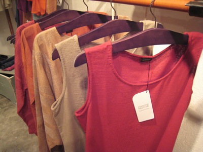 母も店に入るなり、衣類の質感のよさを気に入ったようで、いくつかを手に取り試着をはじめました。