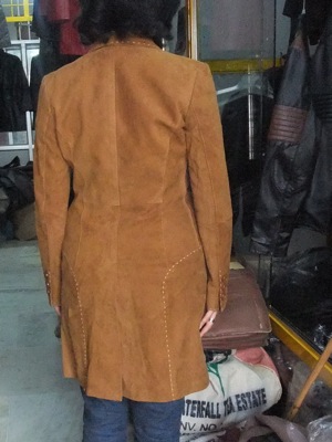 店構えとは裏腹に、なかなかに良さげなジャケットが吊られています。聞けばここは、卸売店で、直営の作業場(工房)を持っており、この界隈のレザーショップにも卸しているのだとか。
