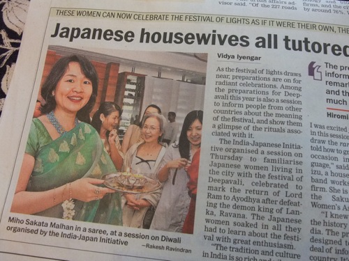 今朝の新聞(DNA紙@BANGALORE) に掲載されていた記事。昨日行われた、バンガロール在住日本人女性からなる「さくら会」のイヴェントの様子です。
