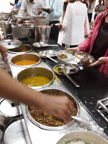 レクチャーのあとは、ひとまずランチをということで、食堂(カンティーン)へ。ヴェジタリアンの料理が準備されており、社員の人たちと一緒にいただきます。