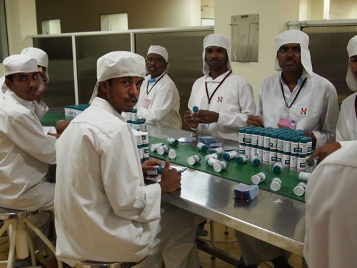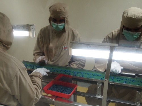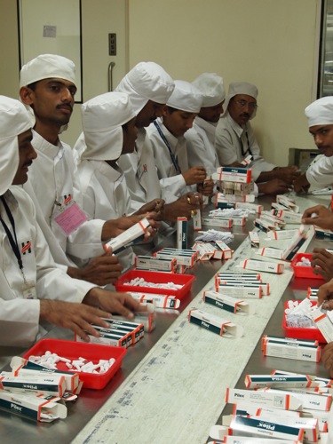 さて、錠剤が詰められた容器は、職員がラヴェルを貼ります。このあたり、「人手過剰」なインドらしい風景。和気あいあいと楽しそうに仕事をしています。