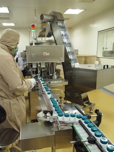 こちらはカプセルを作っているところ。このあたりの作業、すべて個室による機械での作業ですが、必ず人間が立ち会っています。