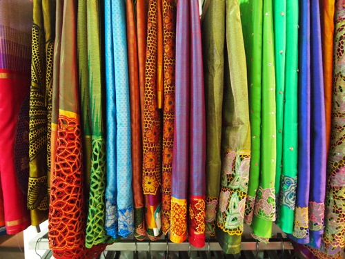 この店は、バンガロール拠点のデザイナーが経営しているらしく、伝統的な技術を現代的なデザインに融合させたサリーが揃っているとのこと。