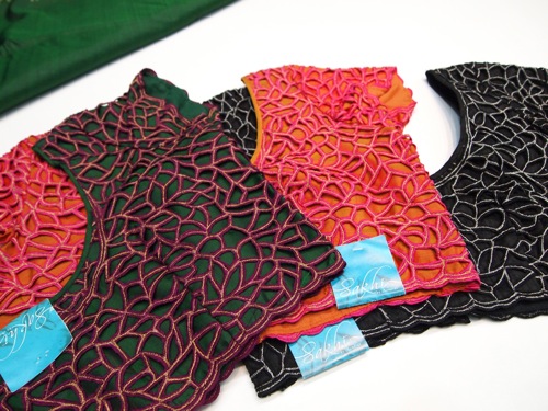 想像していたよりもずっと、丁寧なワークでしかも上品、数が少ないながらも「すてき!」と思えるサリーがいくつもありました。