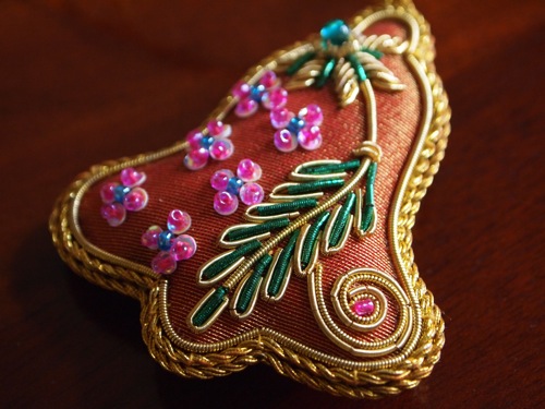インド製だとのこと。サリーなど衣類に施される刺繍の技が生かされているようで、ユニークです。とても精緻なしあがりで、気に入りました。