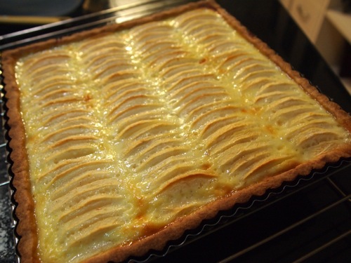 夜は恒例の焼き菓子作り。これは焼きあがったばかりのアルザス風リンゴのタルト。