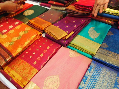 これはここカルナタカ州はバンガロールの絹製品。カルナタカ州では、バンガロールに近い古都、マイソールがシルクの産地で有名です。