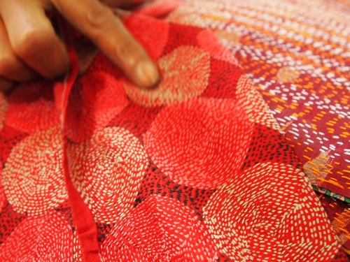 こちらはカンタ (KANTHA) 刺繍のブース。日本の刺し子に似た感じのワークです。