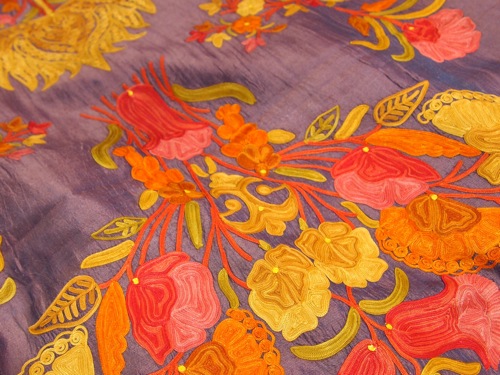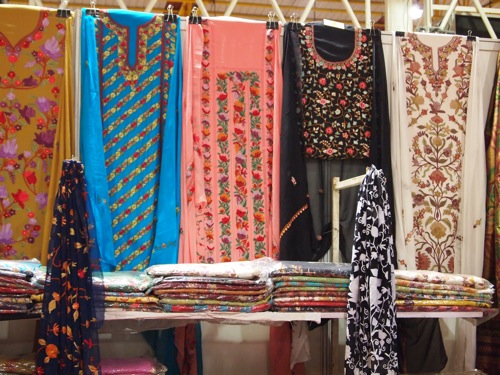 こちらは、これまでも何度かご紹介したカシミール地方の刺繍製品。サルワールカミーズのマテリアルがあれこれと揃っています。