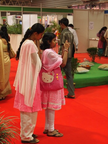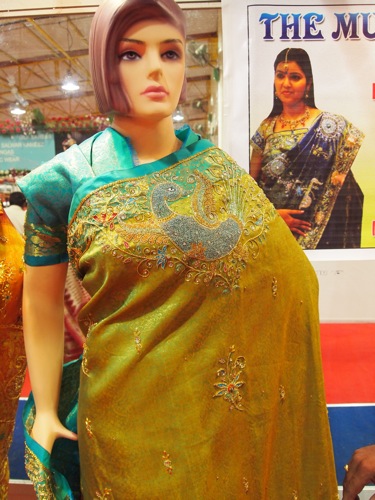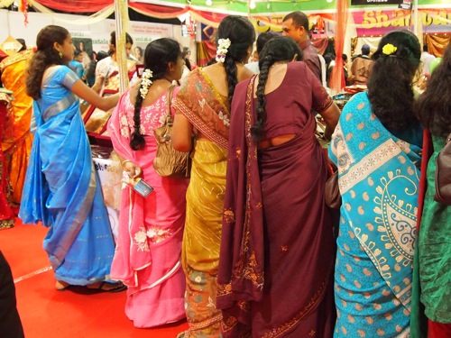 気を取り直して会場内に入れば、今日はもう、ご婦人方で大賑わい。サリーのエキスポだけあり、普段からサリーを着用する人たちが多く訪れているよう。