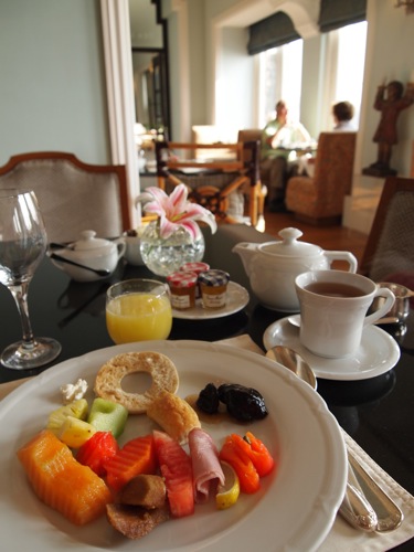わたしは朝もまたゆっくりと湯船につかった後、朝食へ。朝食は、新館のダイニングルームと、旧館のプールサイド、そして旧館のシーラウンジの3カ所でとることができます。