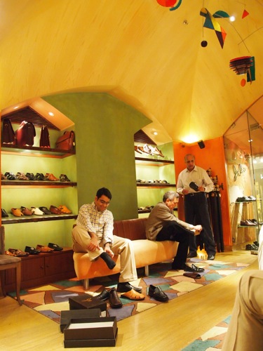 夫です。部屋履きとビジネスシューズ、それからベルトを選びます。男性用の靴も、なかなかに高品質のものが揃っているのです。もちろんすべて、革製です。