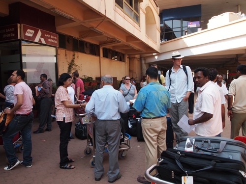 ゴア空港は「懐かしい感じ」が漂う古い建物で、雑然としている。デリーから、義理の両親やその他のゲスト数組も同じタイミングで到着。