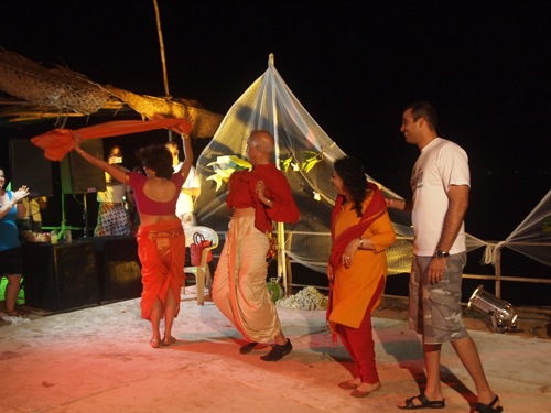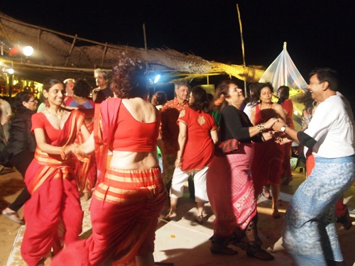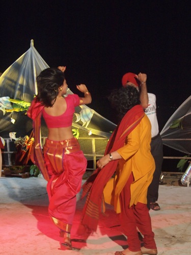 ゴア式サリーを着て、踊りまくるアースタとその母ニラ。ニラもいい加減、お疲れに違いないが、踊り続けている。「がんばれ!」と、折り返し地点を通過したマラソンランナーに声をかけるがごとく、の思いだ。
