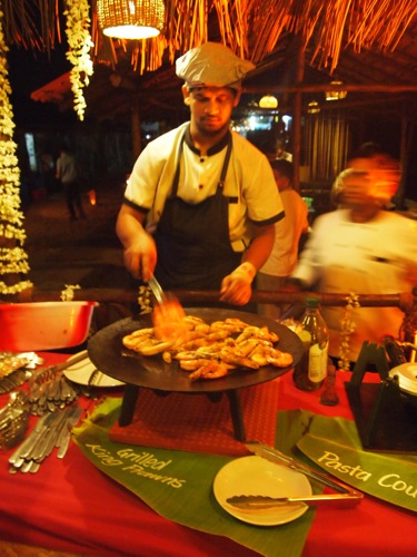 海辺の地ゆえ、エビのグリルなども用意されているが、しかしなぜだか肉の方が多い。