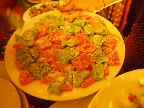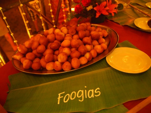 新郎クリントの母により用意されたというゴア独特のお菓子の数々。ホットケーキミックスで作った揚げドーナツのようなものや、朝鮮飴(熊本銘菓)のようなものなど。