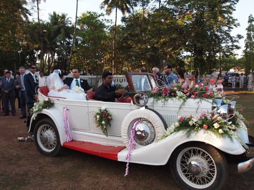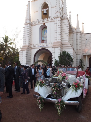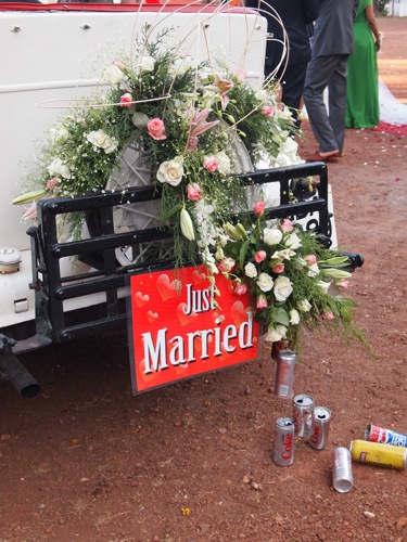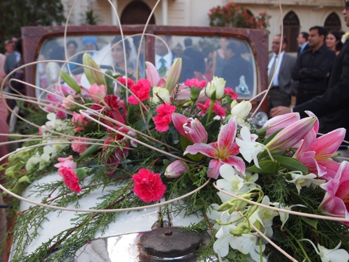 教会の前には、花々で彩られたクラシックカーが。何から何まで、すてきな感じである。あ〜わたしも、こういうの、やってみたかったな〜と、うらやましがる結婚10年目。